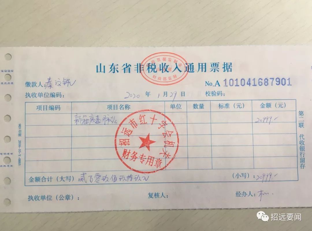 1月29日下午,畢郭鎮(zhèn)東秦家村的秦汶銑來(lái)到市紅十字會(huì),為新型冠狀病毒感染肺炎疫情防控工作捐贈(zèng)了20999元。