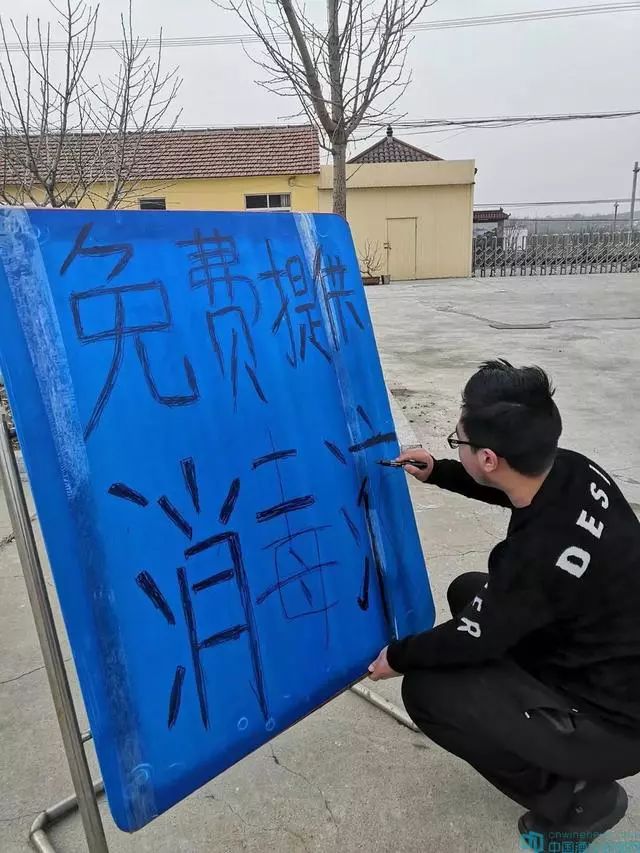 因?yàn)楣と朔偶?,工廠尚未開(kāi)工。要干就要自己動(dòng)手。任玉萍和17歲的兒子從大年初二開(kāi)始就趕到工廠,配制消毒液?!拔覀兊南疽憾际鞘称芳?jí)的,平常經(jīng)常使用?!比斡衿几嬖V華夏酒報(bào)記者,兒子在公司門(mén)口手寫(xiě)了“免費(fèi)提供消毒液”的提示,很多人通過(guò)朋友圈聞?dòng)嵑缶奂鴣?lái),這幾天天天門(mén)口都圍滿了人。
