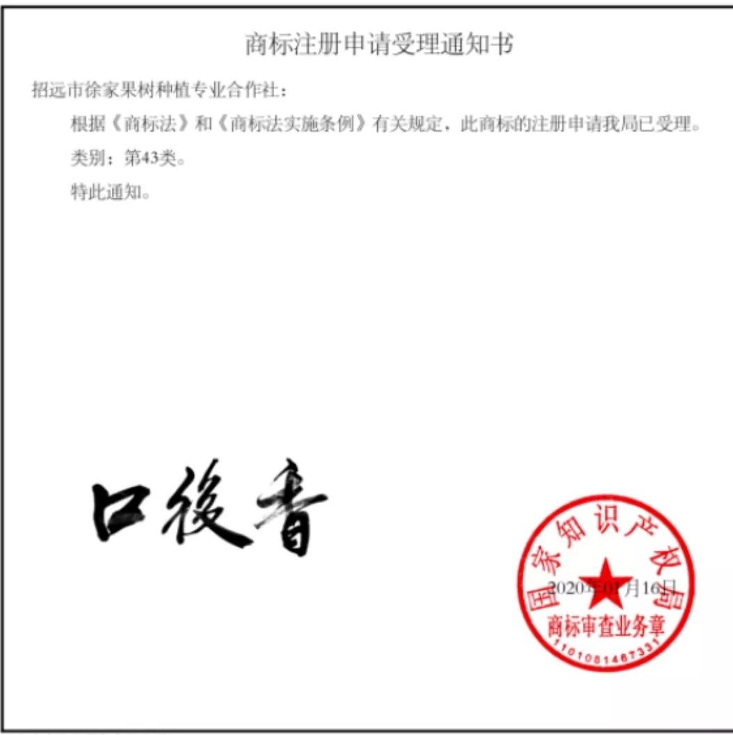 對(duì)于我市張星鎮(zhèn)徐家果樹種植專業(yè)合作社的社員來說,在國家知識(shí)產(chǎn)權(quán)局成功注冊“口后香”商標(biāo)!