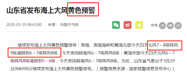 白天海上風力將達到9級