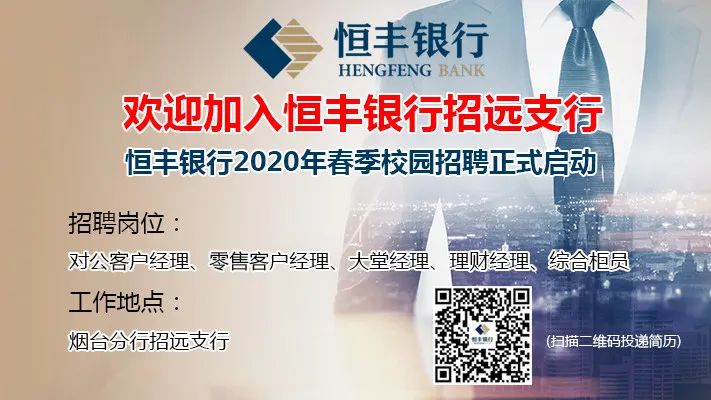 急聘:恒豐銀行招遠(yuǎn)支行