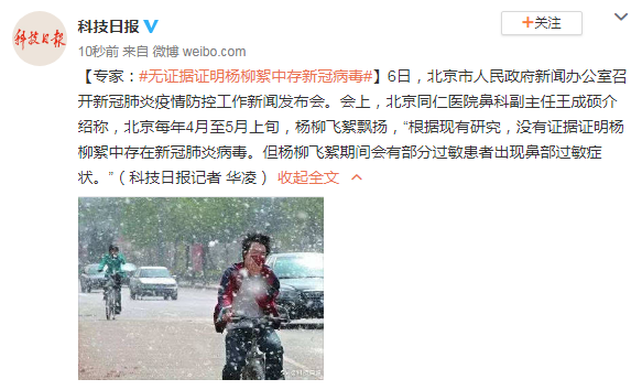 楊柳絮中存在新冠肺炎病毒