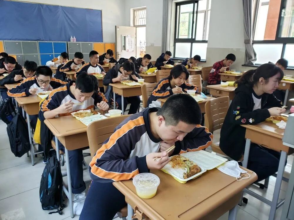 濟(jì)南十一中學(xué)生教室內(nèi)單人單桌就餐