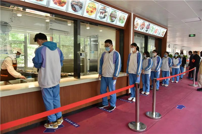 為取保就餐安全,各學(xué)校詳細(xì)制定就餐方案,細(xì)化排隊測溫、腳底消毒、有序洗手、排隊取餐、按號就坐、文明用餐、排隊收殘、保潔消毒等各個環(huán)節(jié),通過錯峰就餐、分散領(lǐng)餐就餐、單向間隔就餐等方式減少師生密集接觸。