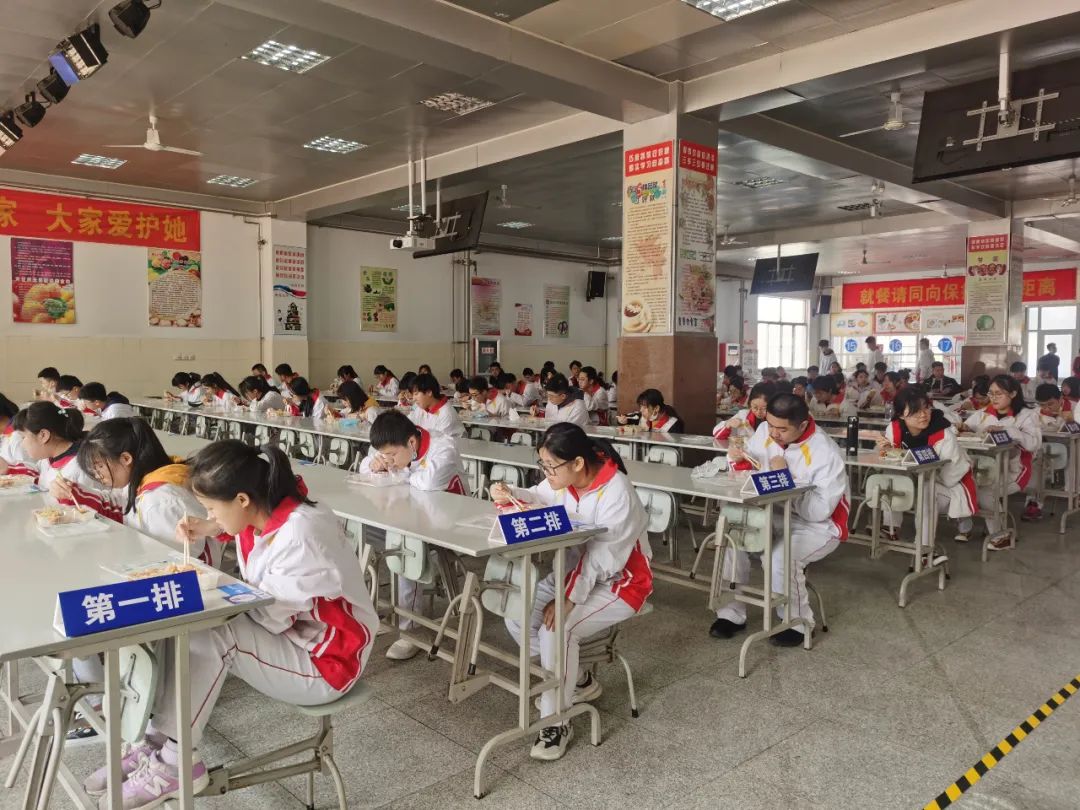 日照三中學(xué)生在餐廳指定座位就餐。