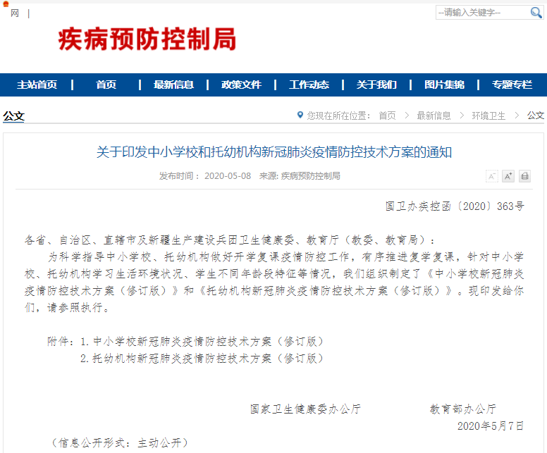 5月8日,國家衛(wèi)健委網(wǎng)站發(fā)布最新通知,近日國家衛(wèi)生健康委辦公廳和教育部辦公廳聯(lián)合印發(fā)中小學(xué)校和托幼機(jī)構(gòu)新冠肺炎疫情防控技術(shù)方案:老師授課時(shí)不需戴口罩;學(xué)生應(yīng)隨身備用口罩;低風(fēng)險(xiǎn)地區(qū)校園內(nèi)學(xué)生不需佩戴口罩。