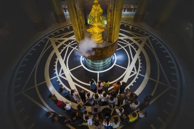 羅山金姑位于黃金博物館神針大廳正中央,神針共用12500片金箔貼制而成,表面紋飾是用金沙鋪成的世界地圖,神針每天會定時開啟。煙霧裊繞間出現(xiàn)的是羅山金姑,用60公斤黃金打造而成,是招遠(yuǎn)財富的守護神,金銀使者的化身,代表著財富和幸運,所有有緣見到羅山金姑的朋友,都會誠至金開,祈福得福,心想事成。