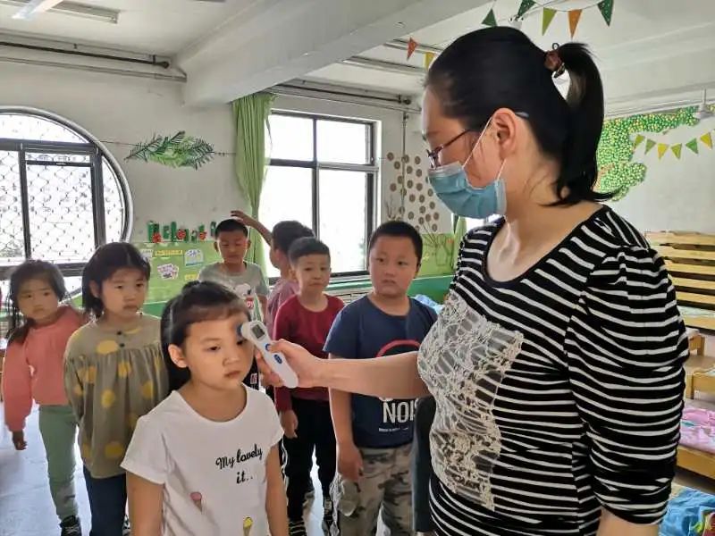 離園前再次測(cè)溫,確保孩子們健康的離園。