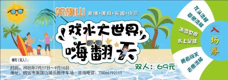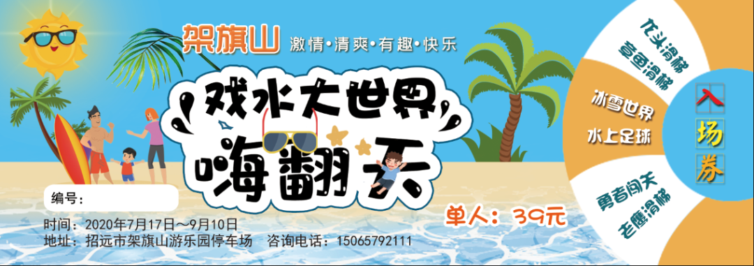 福利來了 一、分享免費送門票 連續(xù)2天分享此鏈接,并配文“我要去架旗山戲水大世界”,即可獲得一張價值39元的單人門票一張。