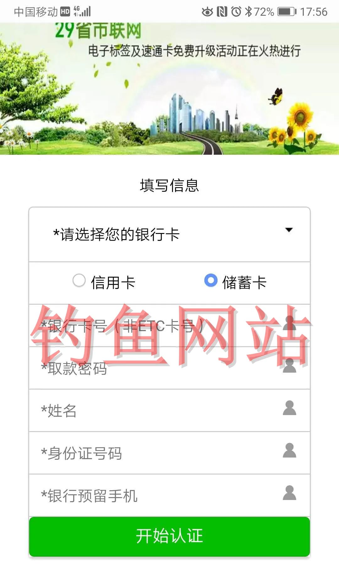 近期有不少不法分子自稱ETC工作人員打著“認(rèn)證失效”、“辦理到期”的名義,向車主發(fā)送附帶“認(rèn)證”鏈接的詐騙短信。因有不少車主忘記了自己辦理ETC的時(shí)間,往往對(duì)短信內(nèi)容信以為真,按短信要求點(diǎn)擊了鏈接并填寫了相關(guān)信息,從而造成財(cái)產(chǎn)損失。