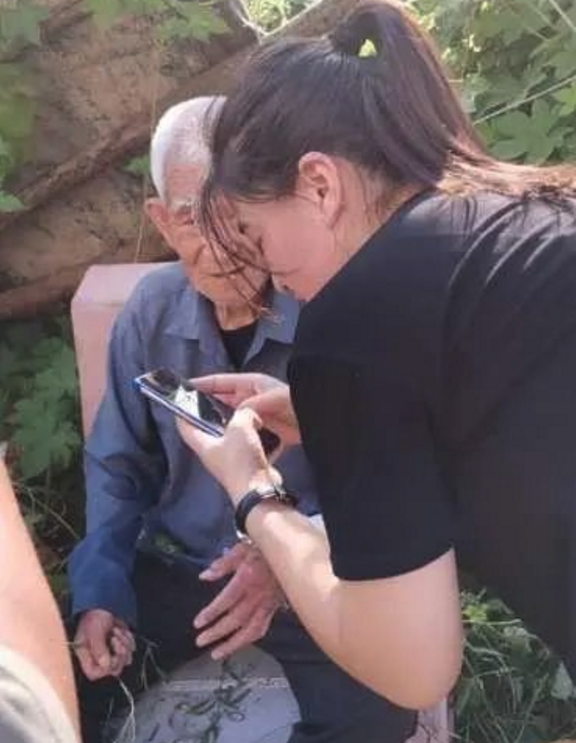 突然,正在搜索的隊(duì)員李紹慧發(fā)現(xiàn)草叢旁邊坐著一位極像走失的老人,茫然地坐在那里,目光呆滯,很明顯已經(jīng)非常虛弱。