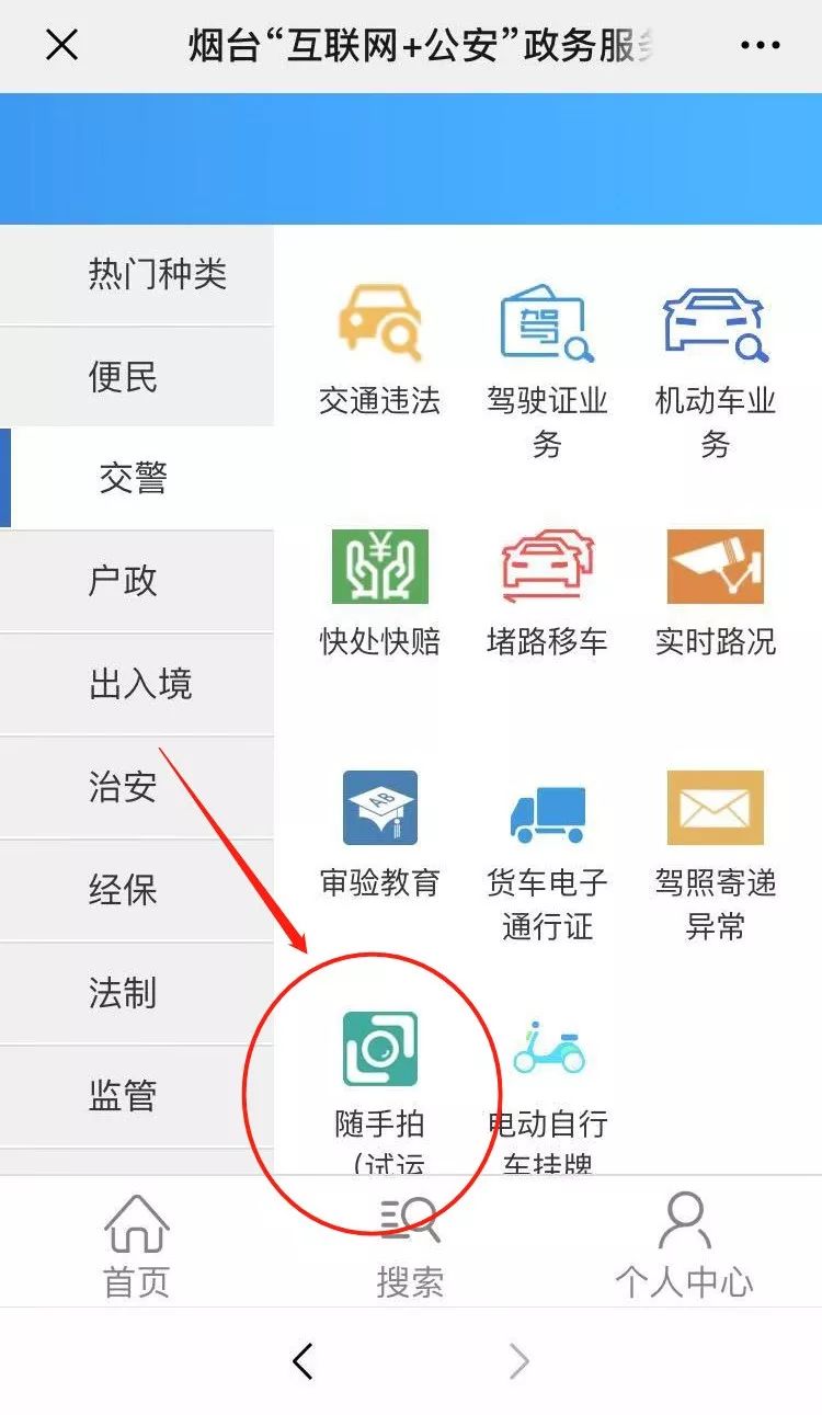 2.“煙臺(tái)公安”或“煙臺(tái)交警”微信公眾號(hào)“微警務(wù)”模塊下“隨手拍”專欄;