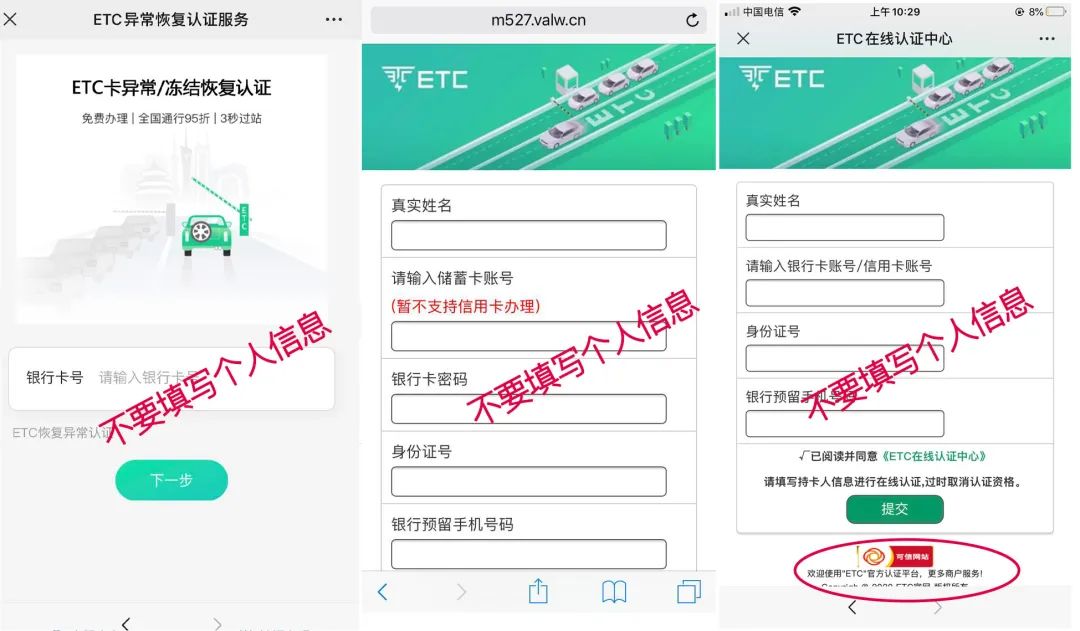 11月5日19時,福山區(qū)初某接到一條ETC快到期的短信,點擊鏈接,填寫了三次驗證碼后其銀行卡被轉走13994.89元。