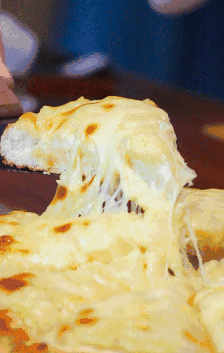 拔著絲就上桌的芝士披薩