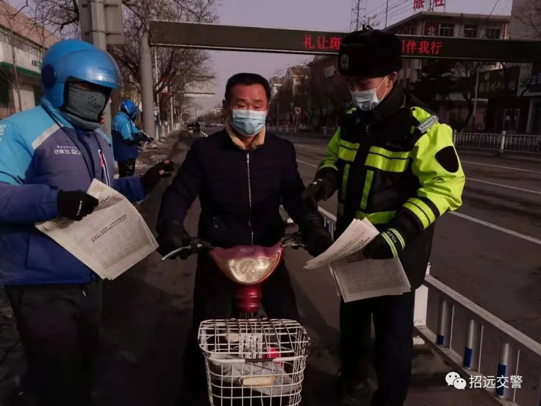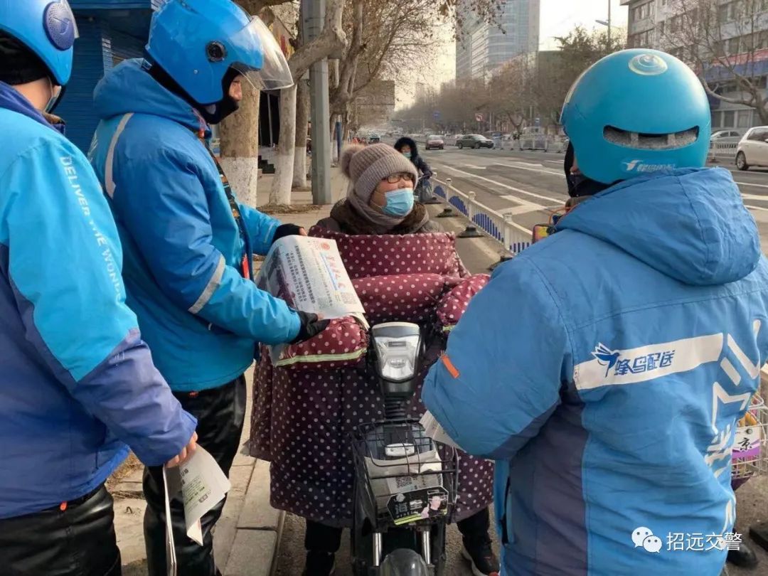 為進(jìn)一步激發(fā)廣大群眾參與道路交通安全治理的積極性,全面壓降道路交通事故,1月14日,招遠(yuǎn)交警組織10名“餓了么”外賣騎手,與交警一起上路執(zhí)勤,共同開展文明交通志愿服務(wù)活動(dòng)。