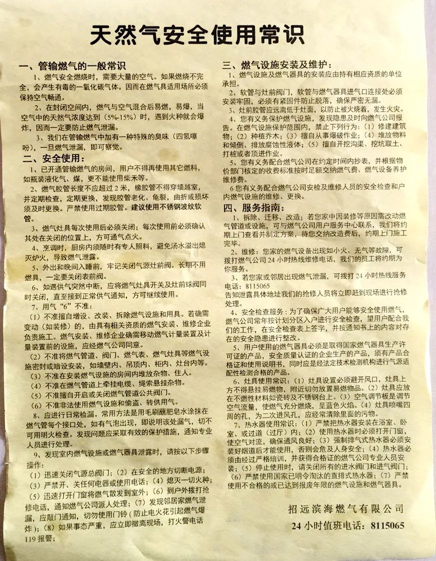 為了保障居民生產生活安全,預防因燃氣使用不當發(fā)生漏氣現(xiàn)象,今日,招遠市濱海燃氣公司,對招遠的部分小區(qū)進行入戶檢查燃氣使用情況。