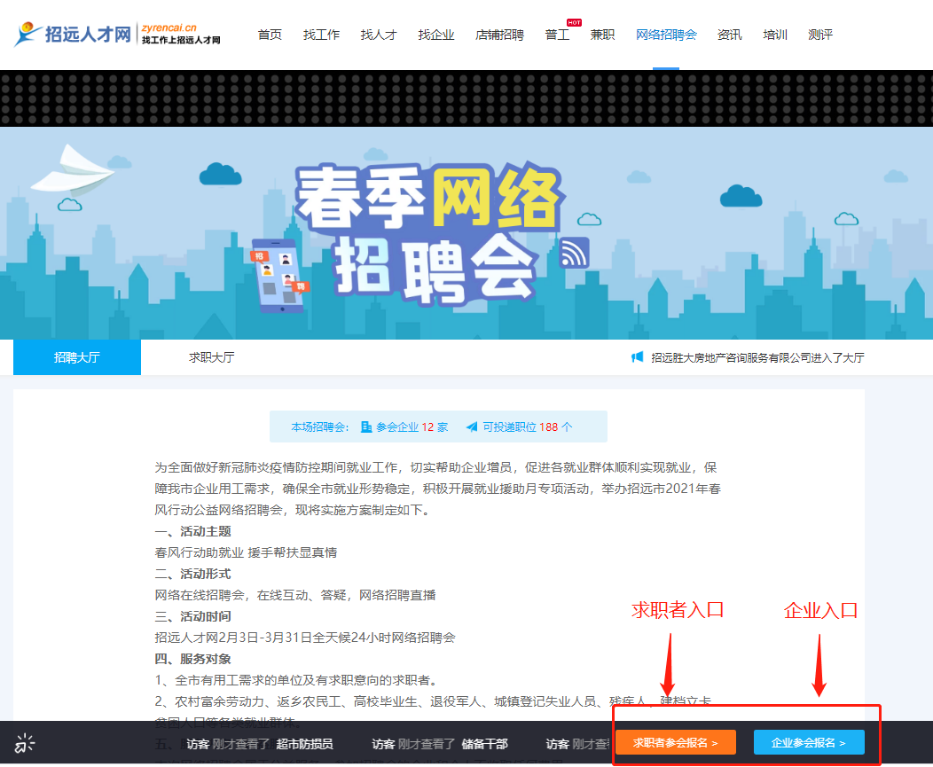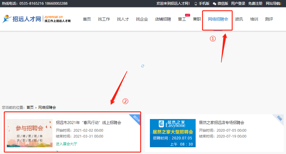 ① 在人才網(wǎng)首頁點擊網(wǎng)絡(luò)招聘會(如圖)