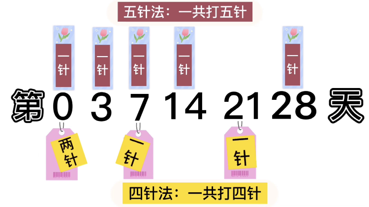 目前,狂犬病疫苗接種有四針劑法和五針劑法兩種注射方式,兩種方式均可產(chǎn)生保護(hù)效果。煙臺(tái)地區(qū)普遍使用四針劑注射法,即當(dāng)日注射兩針,第7天、第二十一天分別注射一針狂犬病疫苗的方法。