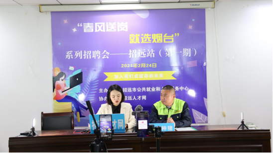 2021年2月24日,農(nóng)歷正月十三,“春風(fēng)送崗,就選煙臺”主題系列招聘會(招遠(yuǎn)站)在招遠(yuǎn)市金融大廈四樓會議室圓滿落幕。本次招聘會由招遠(yuǎn)市公共就業(yè)和人才服務(wù)中心主辦,由“招遠(yuǎn)人才網(wǎng)”協(xié)辦共同發(fā)起,旨在利用春節(jié)后的招聘求職高峰期,為用人單位和求職者搭建線上交流平臺。這是招遠(yuǎn)市首次以網(wǎng)絡(luò)平臺直播的方式進(jìn)行的主題招聘會,采取由用人單位“直播帶崗,線上招聘”的模式,讓求職者足不出戶,就能找到心儀的工作,使雙方都能夠享受到更加專業(yè)化、精準(zhǔn)化的對接服務(wù)。