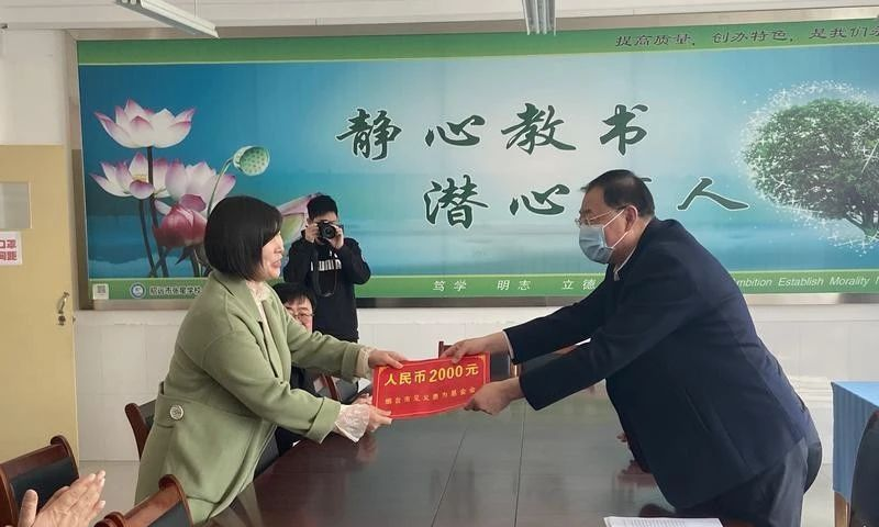 隨后,煙臺市見義勇為基金會一行來到招遠張星學(xué)校,看望正在教學(xué)的初中部老師康金娜,向她頒發(fā)2000元見義勇為慰問金。