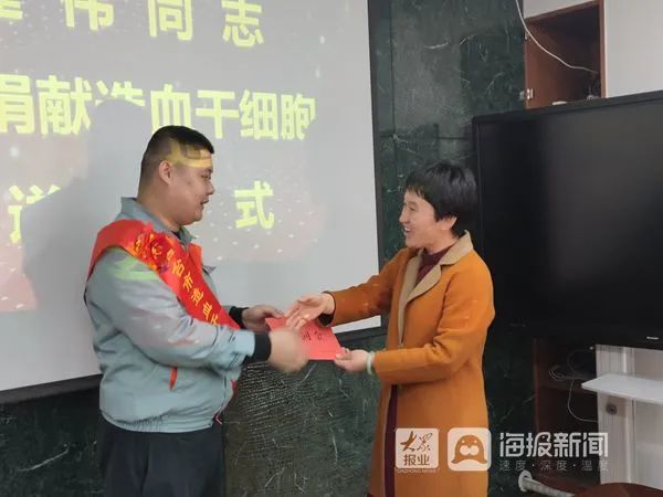 王建偉是山東康泰實(shí)業(yè)有限公司的一名員工,31歲的他為了挽救一個(gè)素不相識(shí)的生命,光榮地成為了招遠(yuǎn)市第5例,煙臺(tái)市第59例造血干細(xì)胞捐獻(xiàn)者,今天,他將趕赴濟(jì)南捐獻(xiàn)自己的造血干細(xì)胞,用實(shí)際行動(dòng)實(shí)踐自己簽署捐獻(xiàn)造血干細(xì)胞知情同意書時(shí)的承諾和誓言,完成生命價(jià)值的升華!
