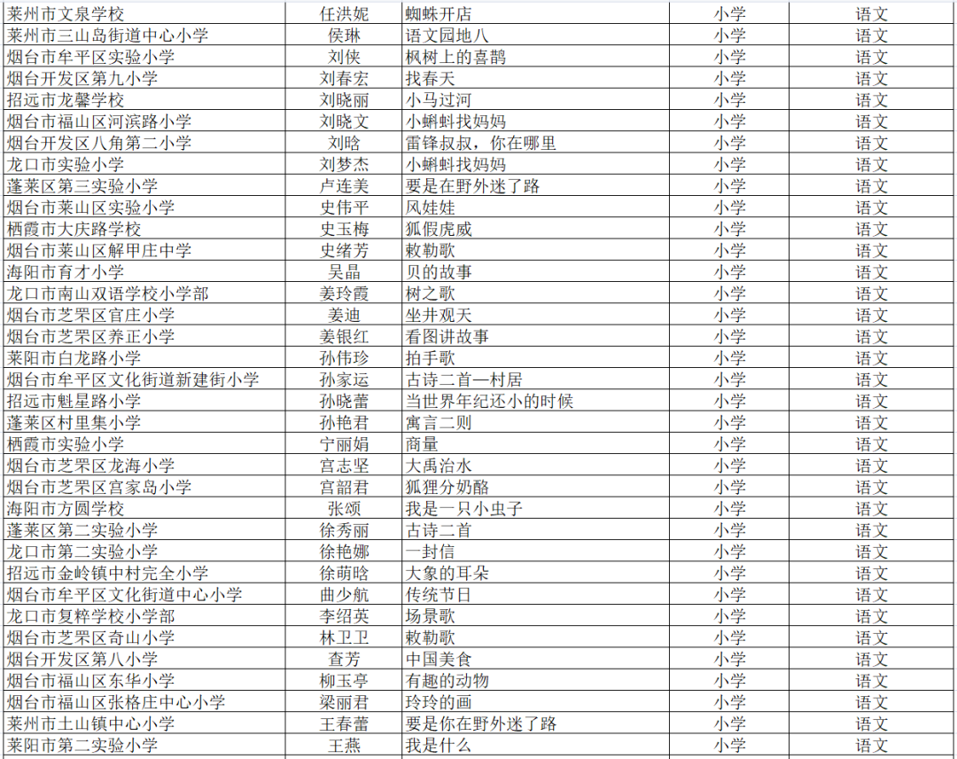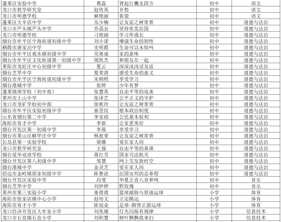 日前,山東省教育廳發(fā)布《關(guān)于公布2020年“一師一優(yōu)課、一課一名師”活動省級“優(yōu)課”名單的通知》