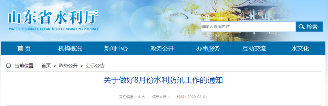 全宇宙只有不到1%的人點(diǎn)擊上方進(jìn)入招遠(yuǎn)信息港你真是個(gè)特別的人8月1日山東省水利廳發(fā)布關(guān)于做好8月份水利防汛工作的通知各市水利(水務(wù))局:據(jù)預(yù)測(cè),8月份全國(guó)降雨量較常年同期偏多,黃淮等地偏多1~2成,其
