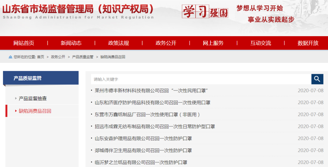 全宇宙只有不到1%的人點(diǎn)擊上方進(jìn)入招遠(yuǎn)信息港你真是個(gè)特別的人近日,山東省市場(chǎng)監(jiān)管局發(fā)布多條缺陷消費(fèi)品召回公告,山東多家企業(yè)召回?cái)?shù)十萬只一次性口罩。據(jù)報(bào)道,此次召回的原因有購進(jìn)的熔噴布過濾效率不達(dá)標(biāo),過
