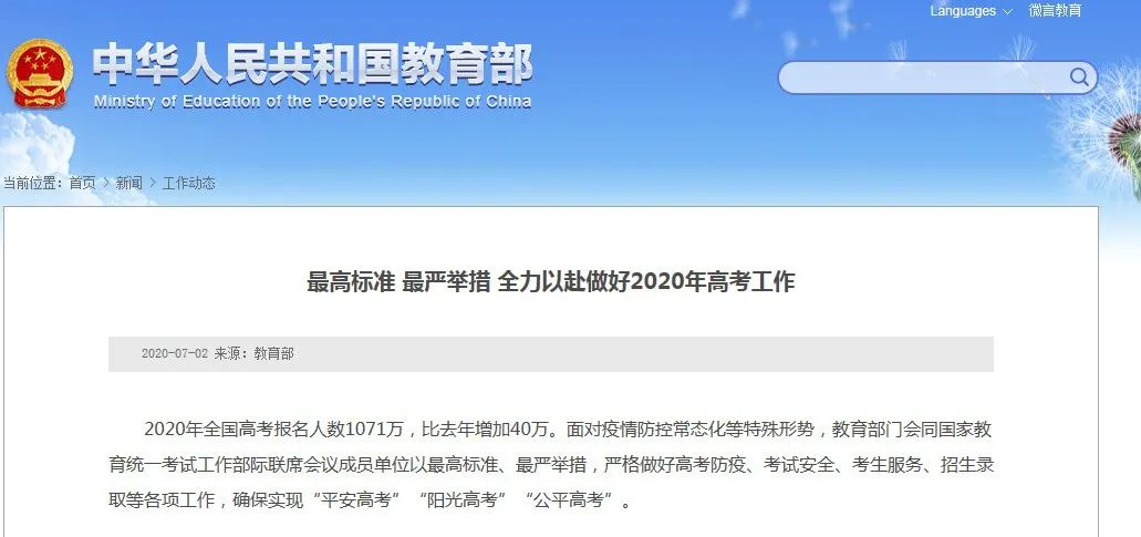 全宇宙只有不到1%的人點擊上方進(jìn)入招遠(yuǎn)信息港你真是個特別的人7月2日教育部發(fā)文,要求以最高標(biāo)準(zhǔn)、最嚴(yán)舉措,全力以赴做好2020年高考工作。教育部要求,認(rèn)真開展新生入學(xué)復(fù)查,對弄虛作假、考試舞弊,騙取加